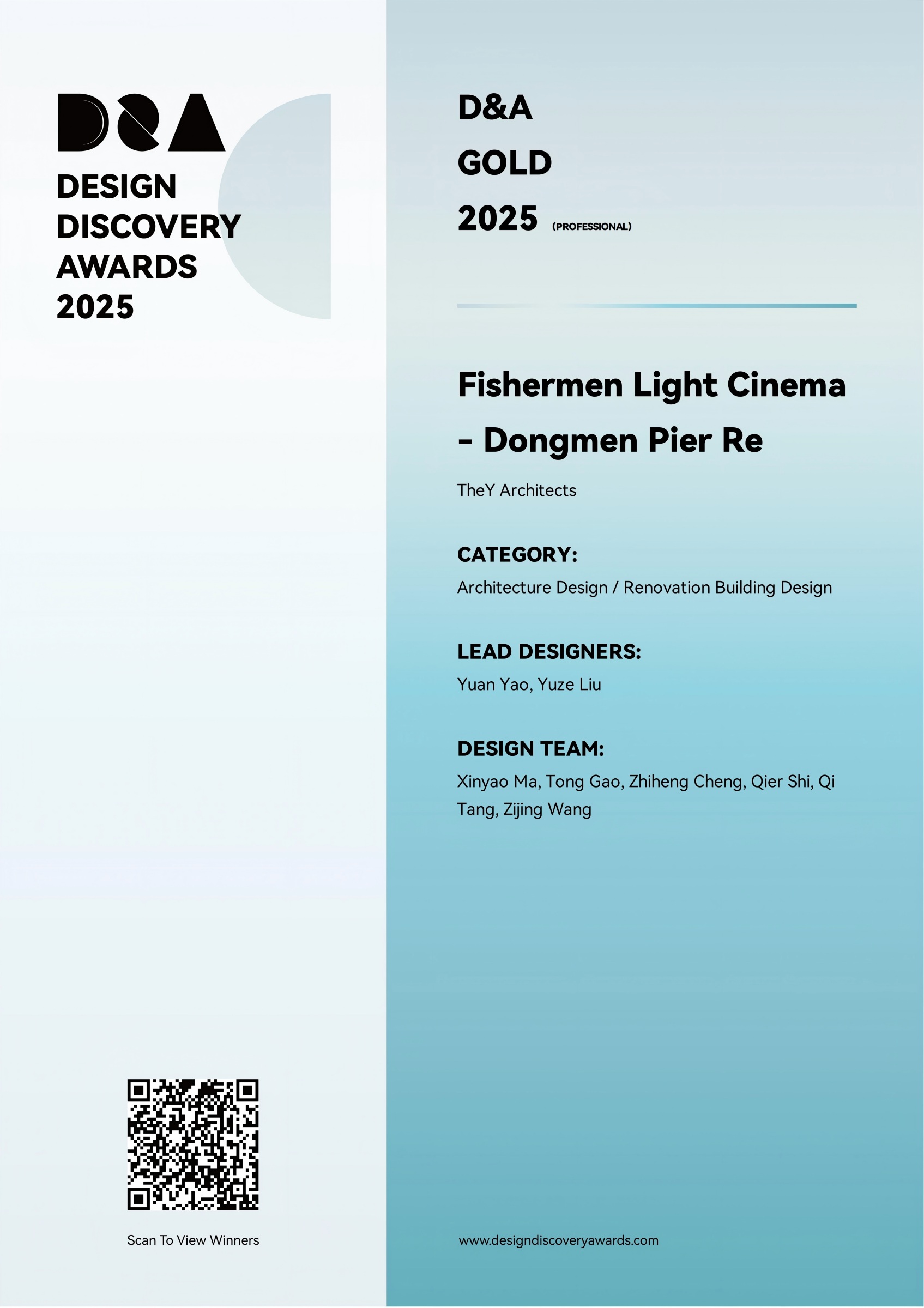 “渔光影院 Fishermen Light Cinema”荣获Design discovery Awards 2025 Gold Awards 建筑改造类金奖