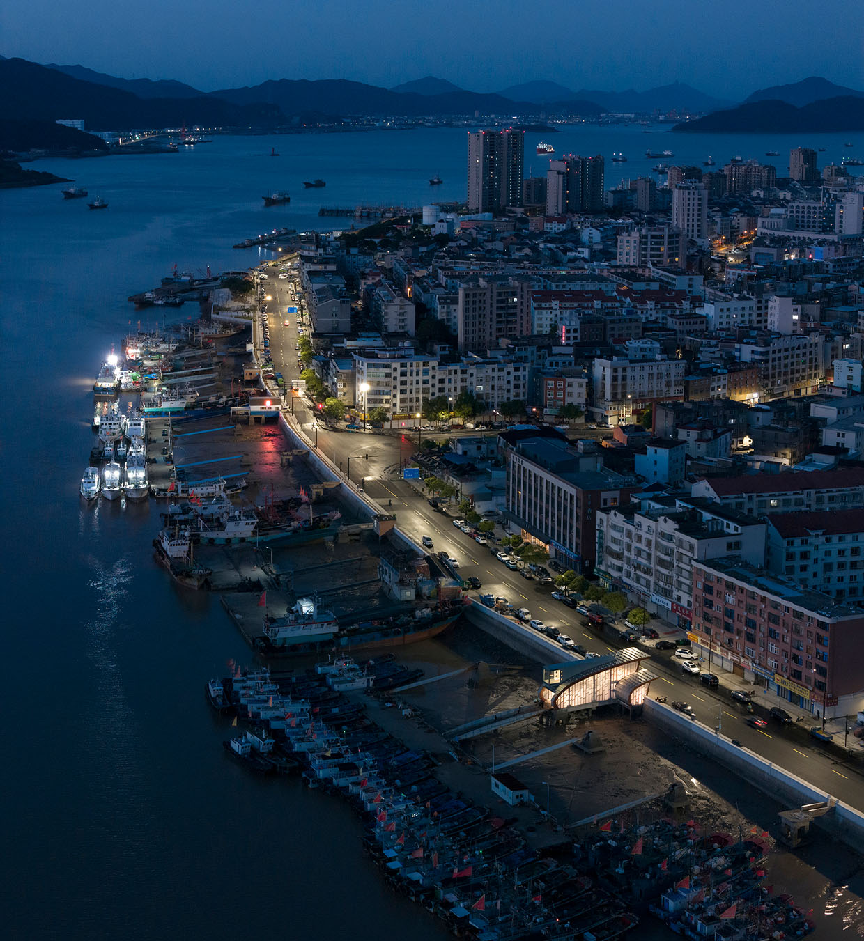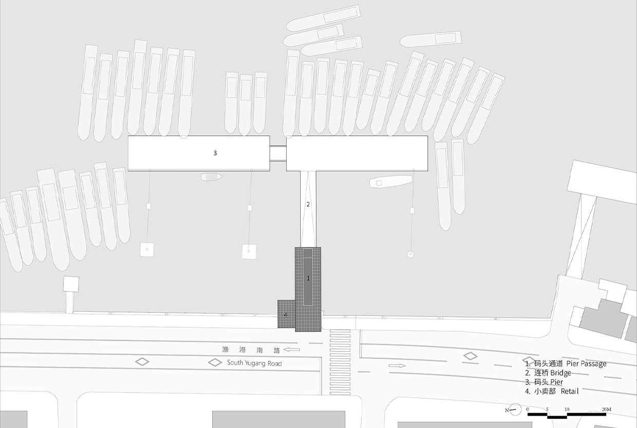 项目位于宁波市象山县的石浦镇渔港南路上的东门码头,将原有的码头通道建筑改造为游客驿站,提供游客候船休息空间及零售空间,并保留码头通道功能。