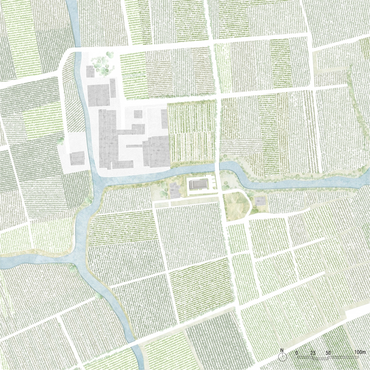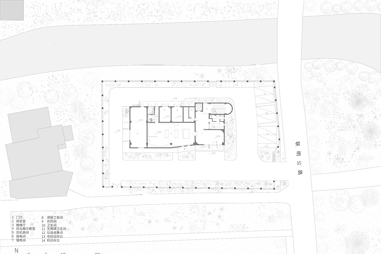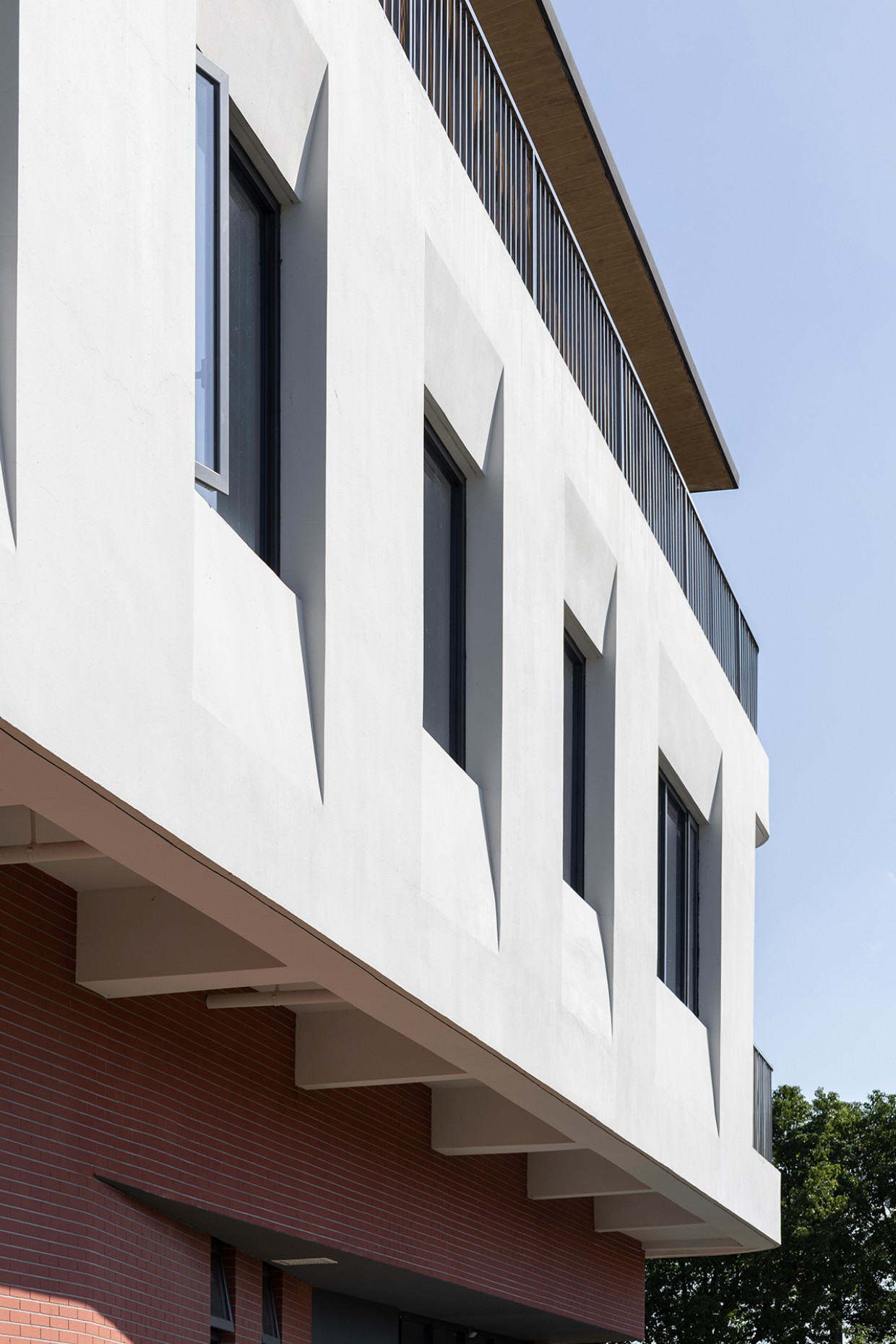 This project is an agricultural experimental building located beside paddy fields, designed to provide comprehensive functions including seed storage, soil and paddy field experiments, agricultural training, and exhibitions for researchers. Within the limited site area and floor space, the offsetting of volumes creates public spaces and terraces, enhancing flexibility and comfort in use. The third floor houses a fully equipped training conference room accompanied by a spacious terrace, ideal for observing the fields, training breaks, and outdoor teaching. The building façade combines white textured paint with red bricks, achieving a cost-effective solution while standing as a distinctive yet harmonious experimental structure in the rural setting.